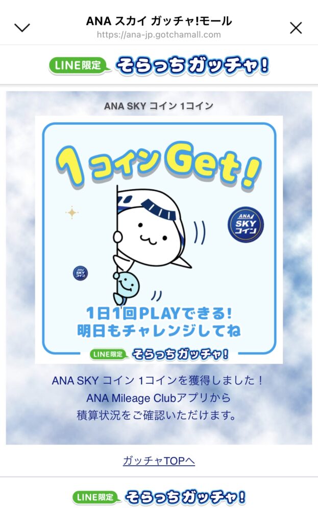LINEからはそらっちガッチャでこんな感じ↓