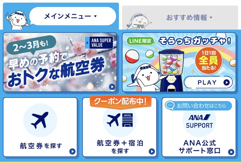 ANAマイレージアプリやLINEで